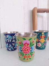 一輪挿しや、ペン立て、窓辺に並べて飾っても素敵な小さなカップです。